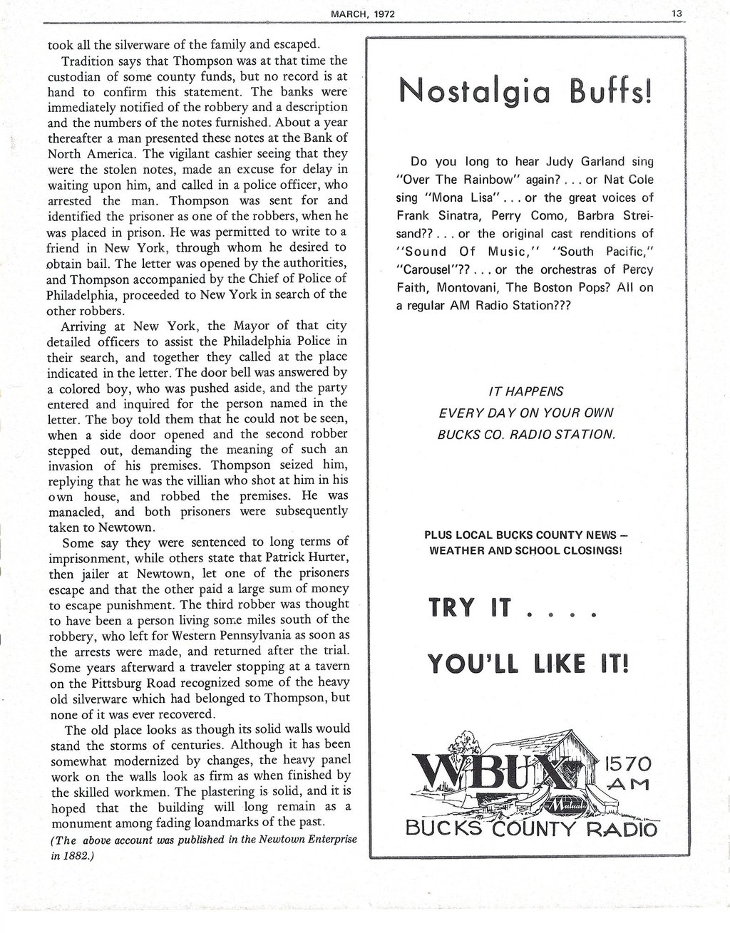 Picture from Bucks County Panorama October 1972 and provided by 9th generation Janet Ludwig