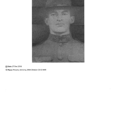 Edwin Silvey Thompson (pictured below) was born in 1912, entered the US Army in 1942, and was killed in action in France September 5, 1944. Sergeant Thompson was the youngest son of Harry and Marietta Thompson of Wood Hill (Solebury Township, Bucks County) PA. He was a bazooka gunner with the 28th Infantry, Eighth Army Division at the time of his death. Mr. Thompson was awarded the Purple Heart. Mr. Thompson grew up on the Headquarters Farm. He was married to Eleanor Matthis and father of three children: Eleanor (Ellen), Dorothy Jane, Edith Ann. Services were held at Thompson Memorial Church in Solebury PA; he is buried at the Beverly National Cemetery in Beverly NJ.